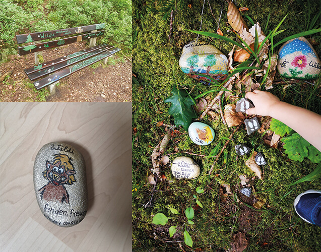 „Wenn ihr den Fluchtweg wandert, dürft ihr gerne euren selbst gemalten Stein auslegen und so andere zum Schmunzeln bringen.“